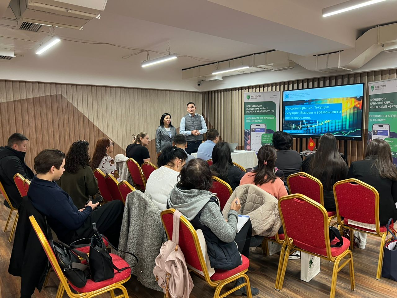 В ходе тренинга эксперты Кыргызской фондовой биржи и Freedom Брокер в Кыргызстане представили актуальную информацию о развитии национального фондового рынка, роли эмитентов и инвесторов, новых финансовых инструментах и цифровых решениях для торговли ценными бумагами, международном опыте в сфере брокерских услуг.