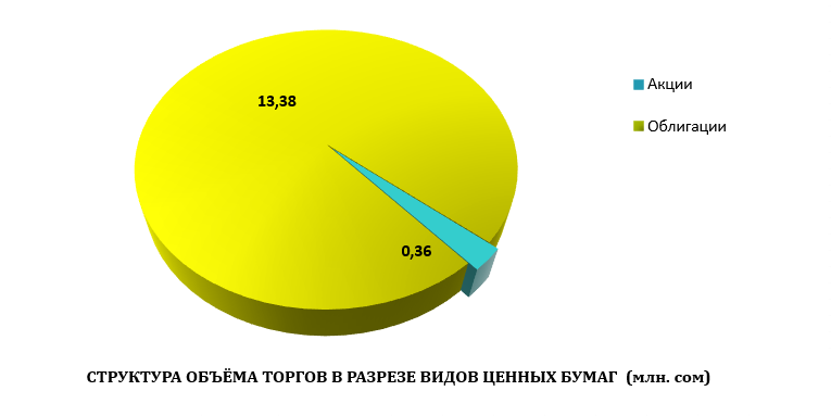 Итого торги листинговыми ценными бумагами были зафиксированы на сумму 13,71 млн. сом.