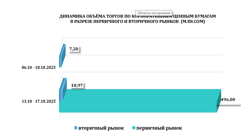 С 13 по 17 октября 2025 года общий объем торгов на торговой площадке КФБ составил 1 262,96 млн. сом, было зарегистрировано всего 55 сделок с государственными и корпоративными ценными бумагами, основную долю объёма торгов заняли сделки с государственными ценными бумагами компаний что составили 59,9 %.