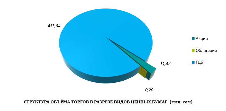 На первичном рынке зарегистрировано 8 сделок с акциями компаний. Сделки с акциями ОАО «Кыргызнефтегаз» была зафиксирована на сумму 4,51 млн. сом.