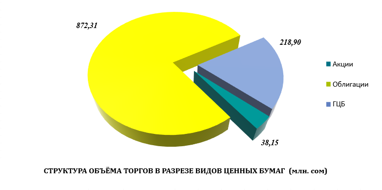Итого торги листинговыми ценными бумагами были зафиксированы на сумму 886,10 млн. сом.