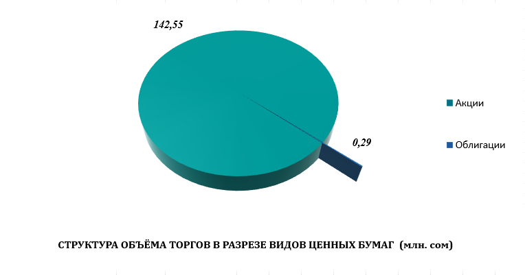 Итого торги листинговыми ценными бумагами были зафиксированы на сумму 1,27 млн. сом.