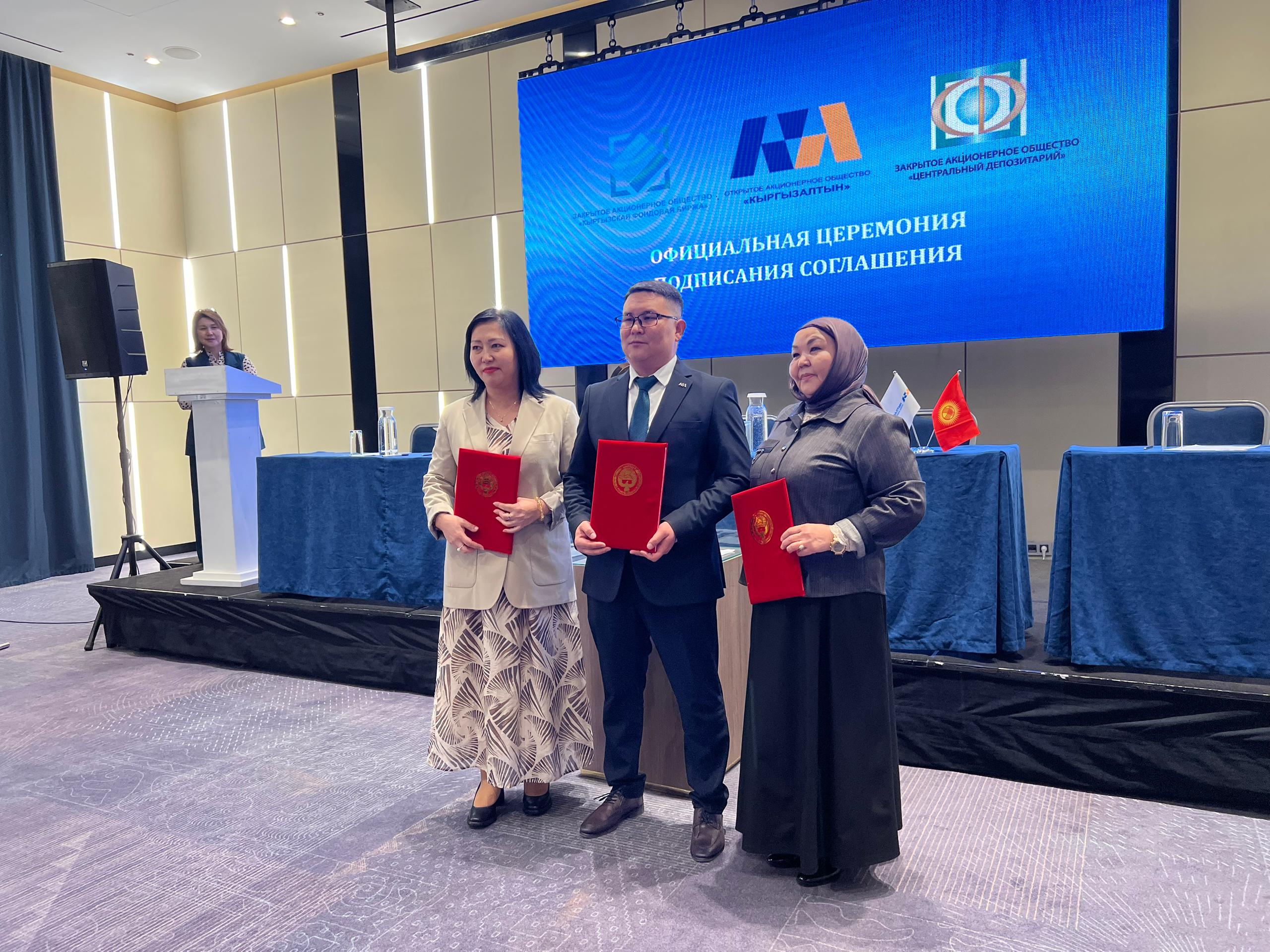 Кыргызская фондовая биржа (КФБ), ОАО «Кыргызалтын» и ЗАО «Центральный депозитарий» подписали трехстороннее Соглашение, которое обеспечивает возможности свободной купли-продажи драгоценных металлов посредством использования современной индустриальной технологической автоматизированной системы биржи.