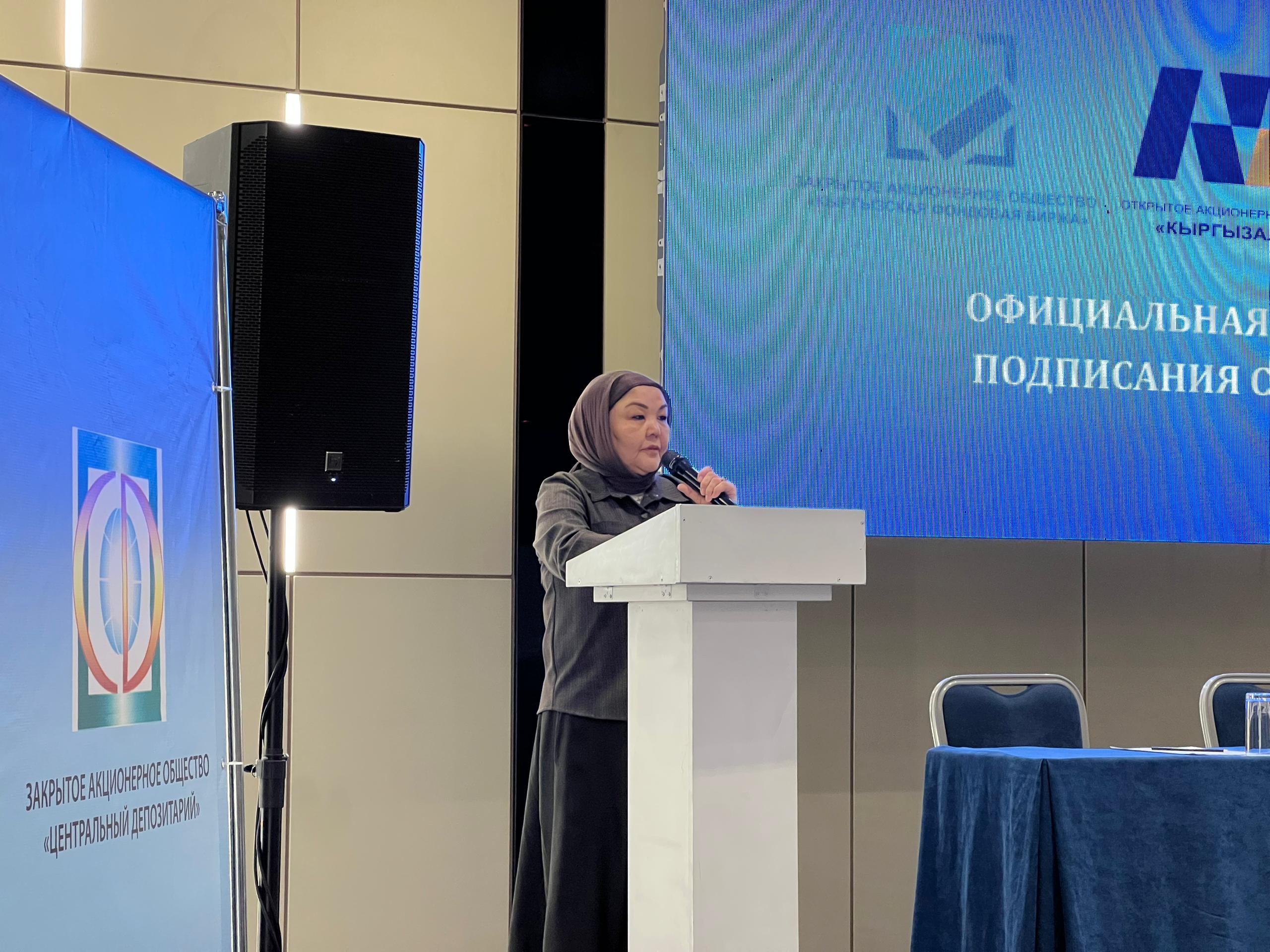 "Реализация данного соглашения между КФБ и Кыргызалтын будет способствовать развитию финансового рынка, увеличению инвестиционной привлекательности на внутреннем рынке и эффективному использованию национальных ресурсов".